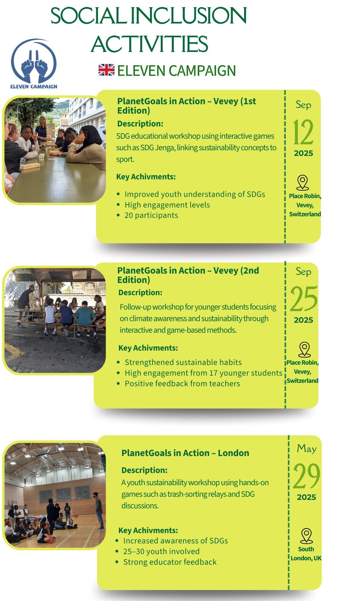 SDG educational workshop using interactive games such as SDG Jenga, linking sustainability concepts to sport.