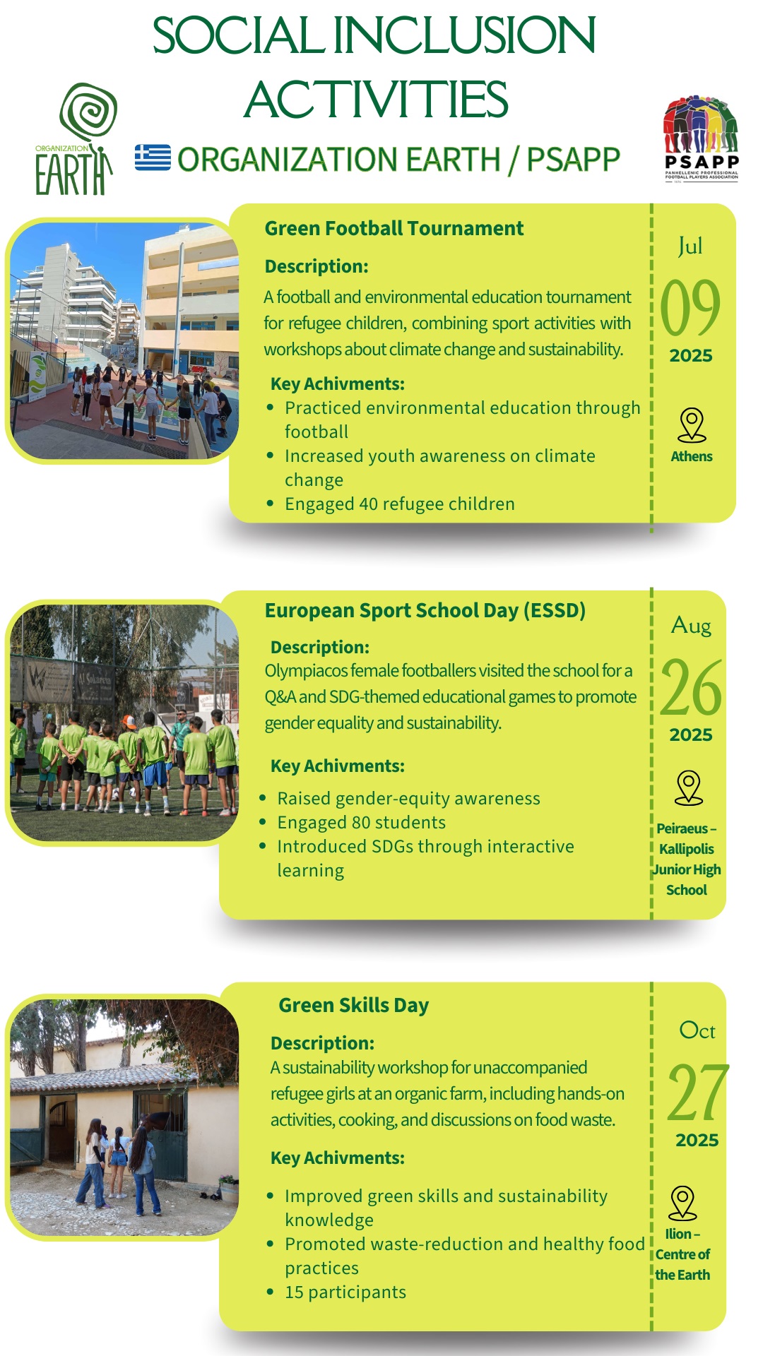 A football and environmental education tournament for refugee children, combining sport activities with workshops about climate change and sustainability.