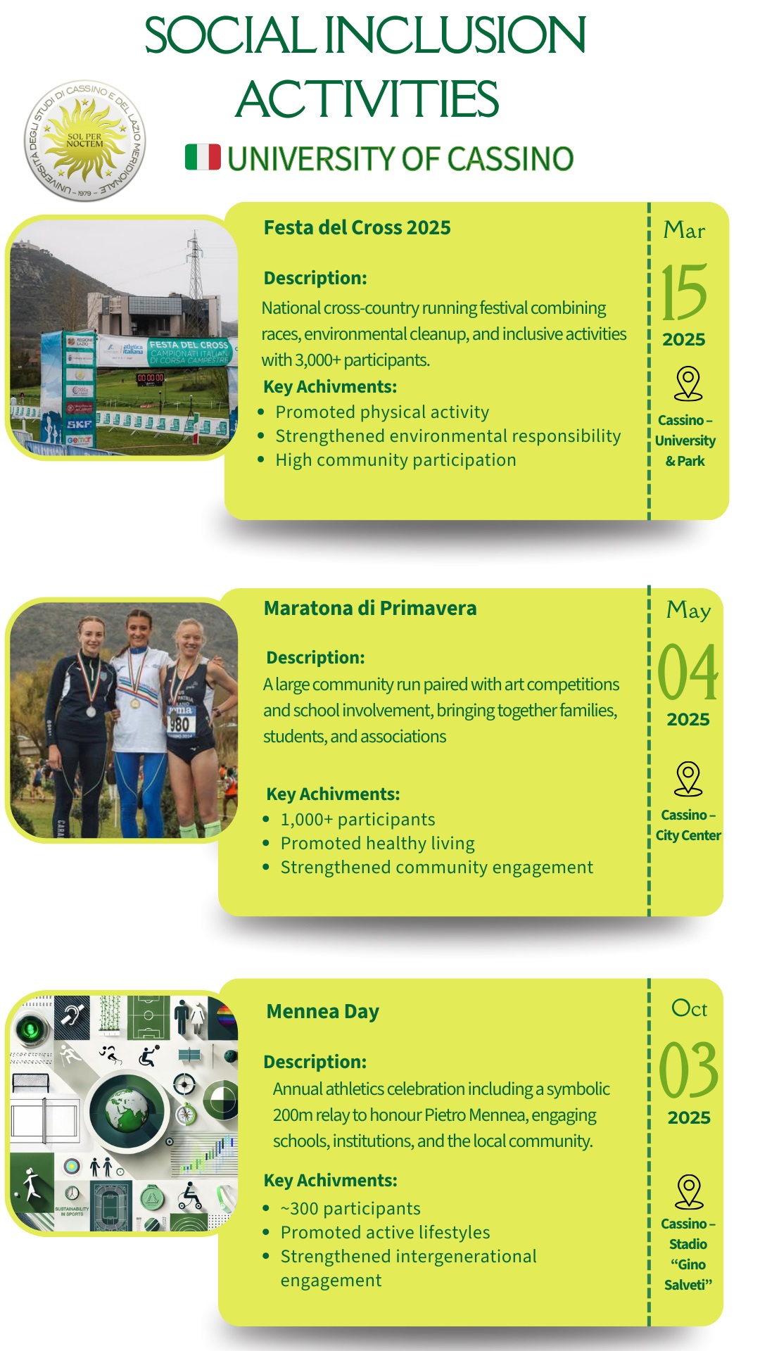 Annual athletics celebration including a symbolic 200m relay to honour Pietro Mennea, engaging schools, institutions, and the local community.